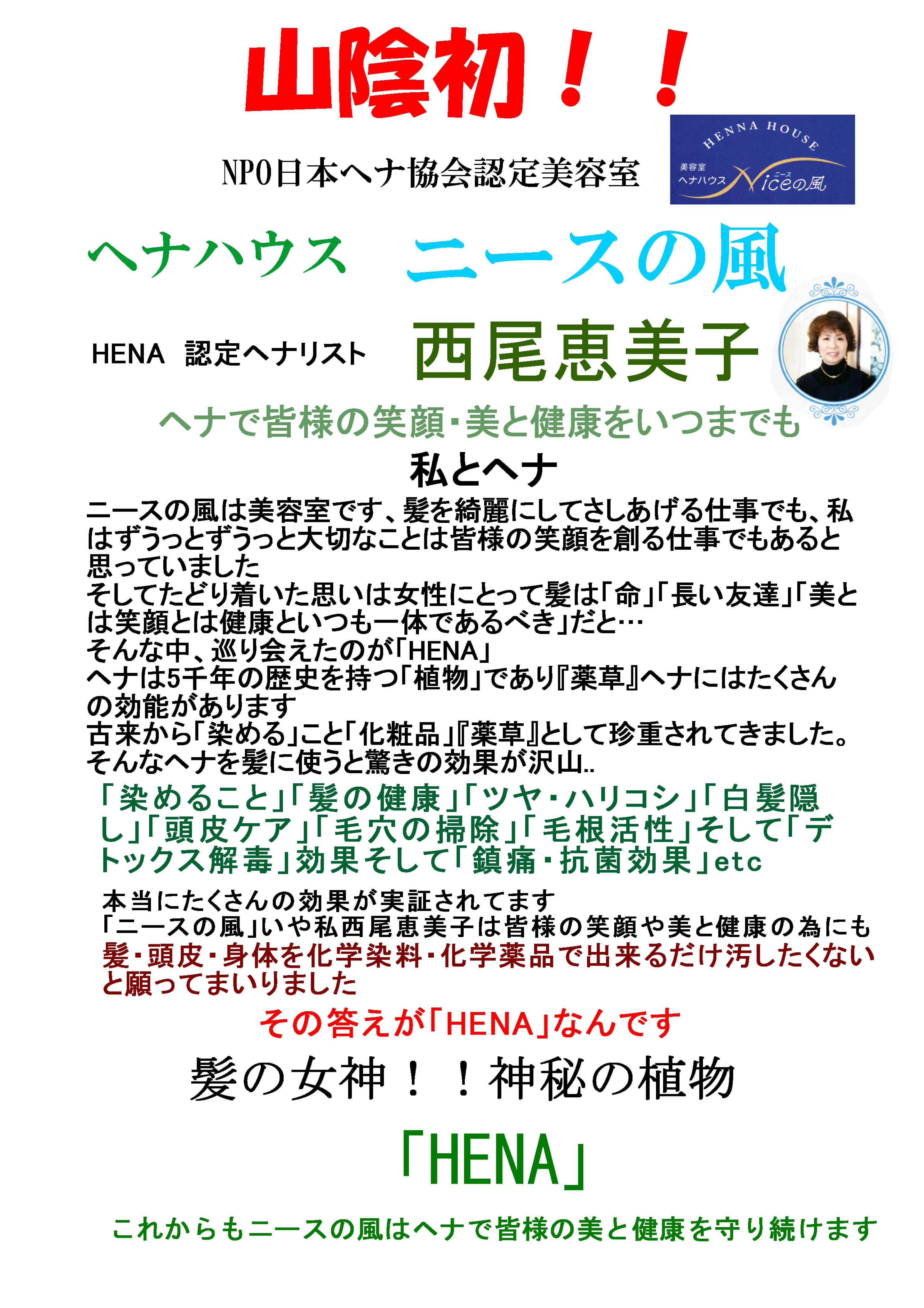 ヘナ ヘナカラー hena HENA ヘナハウス 鳥取県 米子市 美容室